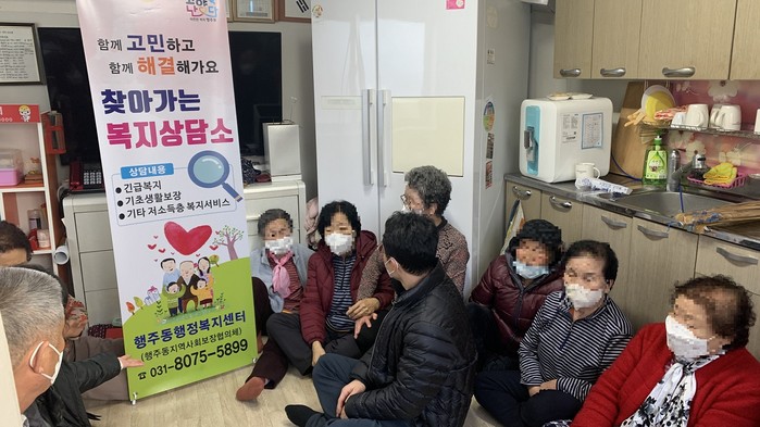 김점순 사뫼장미경로당 회장님은 “이렇게 추운 겨울에 행정복지센터 직원들이 직접 경로당에 와서 보건복지 상담을 해줘서 주민들이 너무 고마워하고 있다”라며 행주동 직원들의 수고에 감사를 표했다.