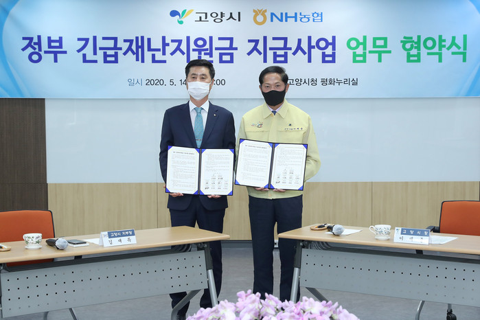 앞서 시는 지난 14일 고양시청 평화누리실에서 NH농협은행(고양시지부), 8개 지역농협과 정부 긴급재난지원금 지원을 위한 업무협약을 체결했다.