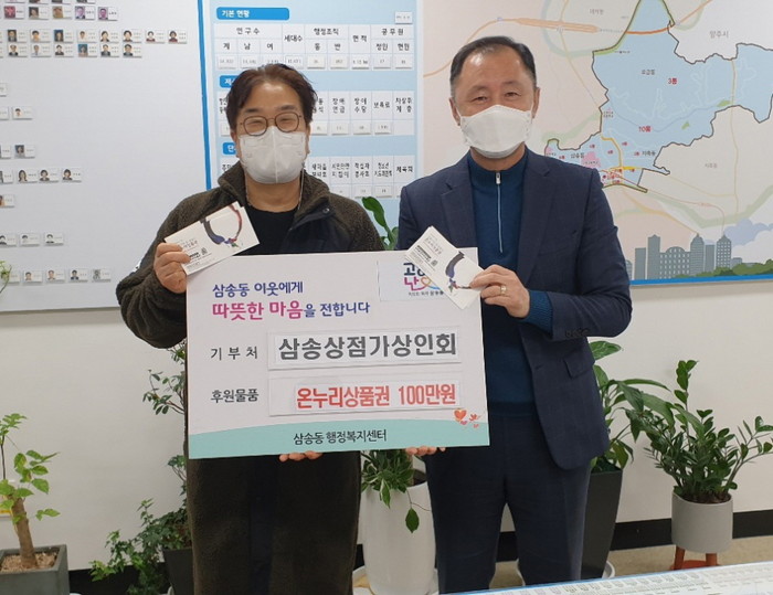 [부자동네타임즈 김인수기자] 고양시 삼송동행정복지센터(동장 김동원)는 지난 10일, 삼송상점가상인회(회장 강두현)가 연말연시를 앞두고 어려운 이웃을 위해 온누리상품권 100만원을 기부했다고 밝혔다.