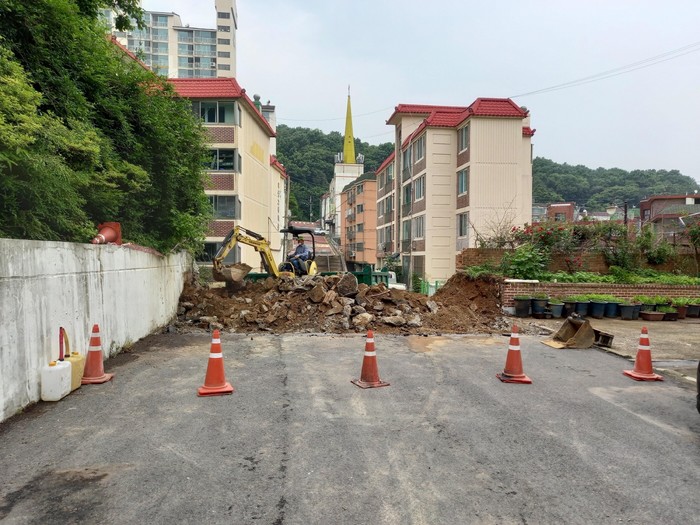 주차장으로 알고 입주 후 지금까지 담장 뒤 공간을 사용해오던 인근 연립주택 주민들은 주차공간을 잃을까 난색을 표했다. 계속된 주민협의를 위한 노력에도 지난 2월 담장철거 반대 내용으로 집단민원이 제기되기도 했다.