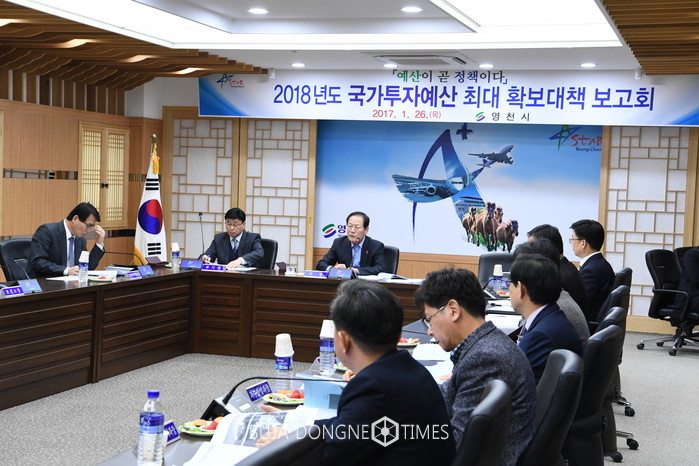 [부자동네타임즈 서소민 기자]영천시는 26일 시청 영상회의실에서 김영석 시장 주재로 지역발전과 시민행복을 위한 2018년도 국가투자예산 최대 확보 대책보고회 개최를 시작으로 국가예산확보를 위해 발 빠르게 움직이기 시작했다.