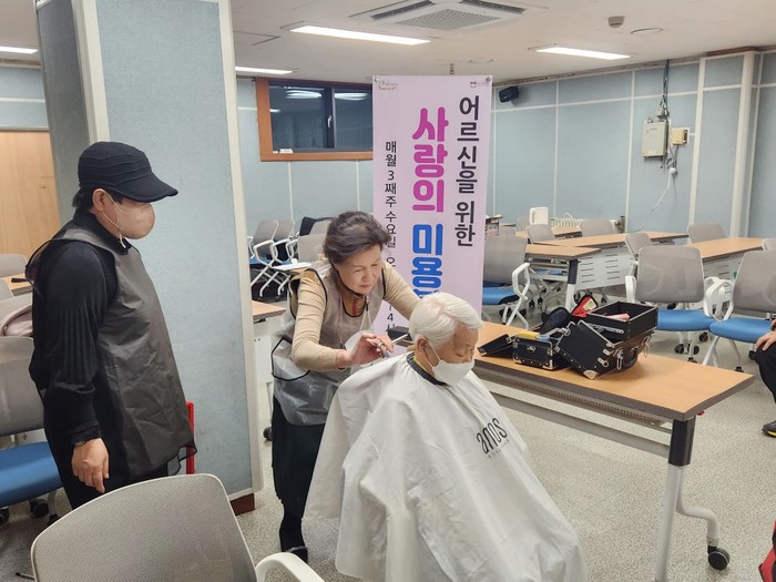이발을 받은 한 어르신은 “생활이 어려워 이발소에 갈 여건이 되지 않았는데, 이렇게 머리를 깔끔하게 잘라주시니 너무 기쁘고 감사하다”며 고마움을 전했다.