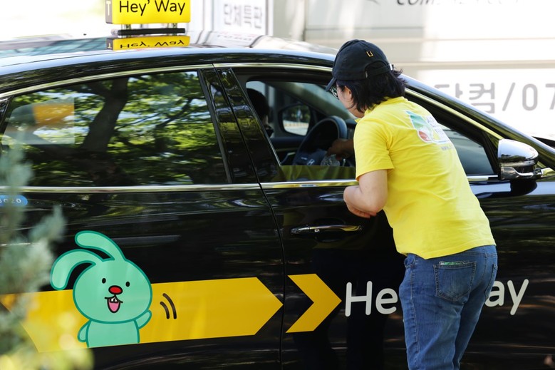 지난해 8월 신천지자원봉사단 전북지역연합회가 한 택시기사에게 얼음생수 나눔을 하고 있다.