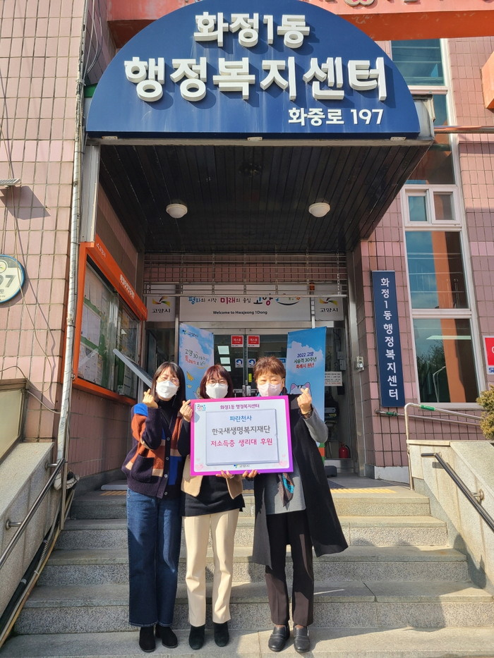 [부자동네타임즈 김인수기자] 고양시 덕양구 화정1동 행정복지센터(동장 황선혜)는 지난 15일 한국새생명복지재단 일산동구 중소기업위원회(위원장 박진향)에서 저소득층을 위한 생리대 4박스(2,560장)를 화정1동에 기부했다고 밝혔다.