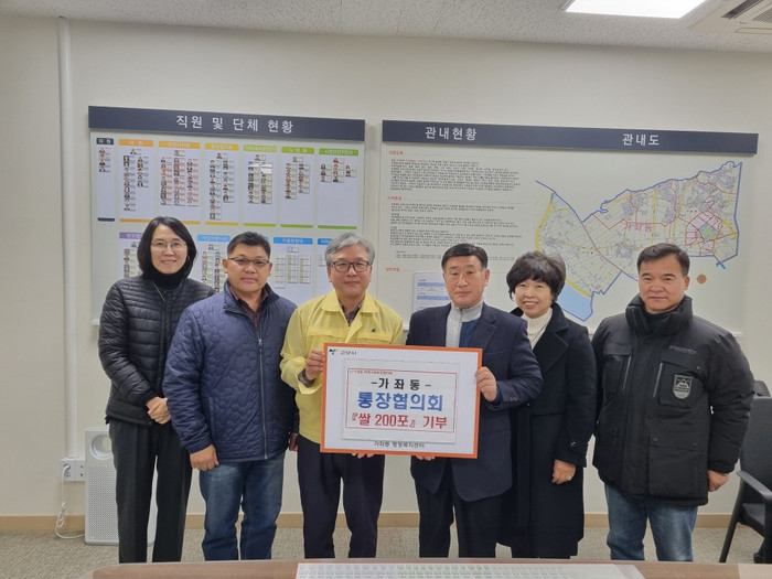 [부자동네타임즈 김인수기자] 가좌동 통장협의회(회장 이경철)는 지난 12월 5일, 일산서구청 사회복지과를 방문해 관내 어려운 이웃들을 위해 쌀 5kg, 200포를 전달했다.