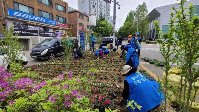 이 날 꽃 심기 행사에는 주민자치위원을 비롯한 통장, 시민안전지킴이, 김보경 시의원, 동 직원 등 20여 명이 참여해, 마을 화단 2개소와 도로변 교통 섬, 동행정복지센터 화단, 성라초등학교 등 마을 곳곳에 피튜니아 3,000본을 식재했다.