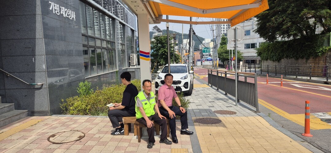가평읍 행복마을관리소는 지난 7일 교통약자의 보행이 많은 가평군청 제2청사 그늘막에 시범적으로 ‘쉼터의자’를 설치했고, 가평오거리 교차로 등 2곳에 3개의 그늘막에도 추가로 설치하는 등 운영을 확대해 나갈 방침이다.