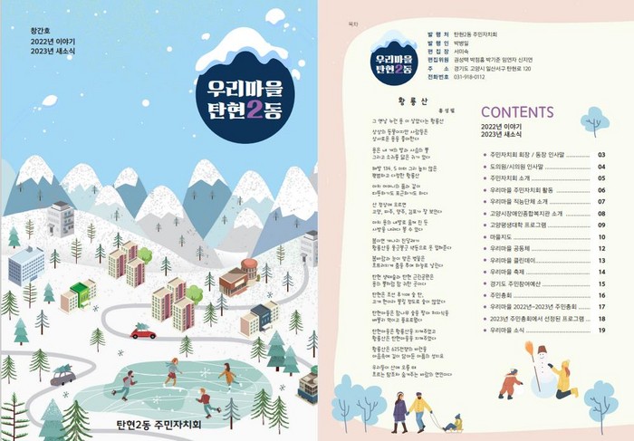 이번 창간호는 탄현2동만의 특색을 살려 구성했고, 주민자치회의 지난 활동들과 우리 마을의 직능단체, 공동체 소개 및 지역 소식 등으로 다채로운 내용을 담았다. 신문을 보는 주민 누구나 주민자치회가 어떤 활동을 하고 있는지 주민총회가 무엇인지, 어떻게 더 나은 마을을 위해 직접 참여할 수 있는지 쉽게 알 수 있도록 했다.