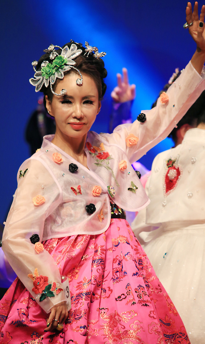 [사진설명] 무대에서 한복을 가장 아름답게 표현하고 있는 56살 박채린모델.