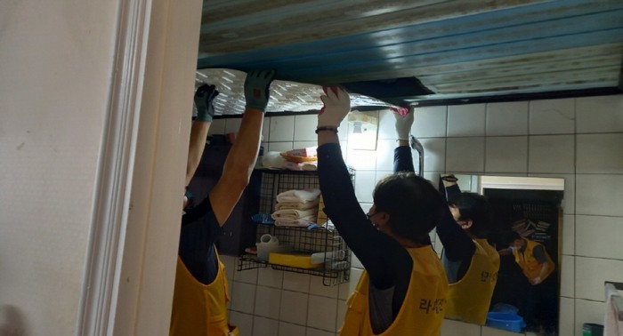 중산성당 라파엘봉사단 20여명도 참여해 집안에 있는 쓰레기를 대거 수거한 후 집 구석구석을 깨끗이 청소 및 소독하고, 도배·장판·페인트칠로 온 집안을 말끔히 단장했다.
