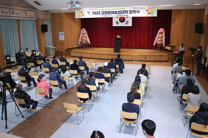 [부자동네타임즈 김인수기자] 2022년도 제16기 고양벤처농업대학 입학식이 3월 17일 신입생 43명이 참석한 가운데 고양시 농업기술센터 대강당에서 개최됐다. 올해 고양벤처농업대학은 청년농업인CEO반, 농업기술전문가반 2개 과정으로 3월 17일부터 10월 19일까지 운영된다.
