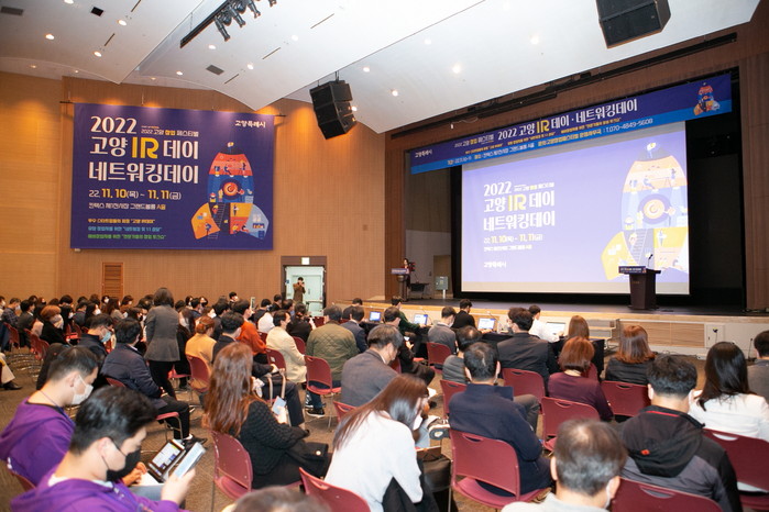 특히 메인 행사인 ‘2022 고양 IR-데이’를 위해 지난 9월부터 56개 기업의 참가 신청을 시작으로 서류평가, 중간평가를 실시하여 최종 10개 기업을 선정했다. 선정된 기업은 각 분야 전문가의 투자유치 교육과 1:1 심층 멘토링 등 피칭 역량을 강화하는 프로그램을 지원받아 고양IR데이에 참여했다.