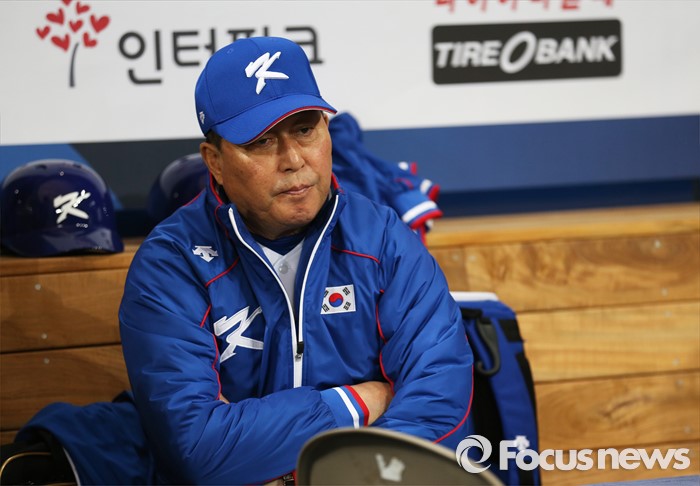 △ 지난 4일 오후 서울 구로구 고척 스카이돔에서 열리는 '2015 서울 슈퍼시리즈' 쿠바와 대한민국의 경기 전 김인식 감독이 선수들의 훈련을 지켜보고 있다. <사진제공=포커스뉴스>