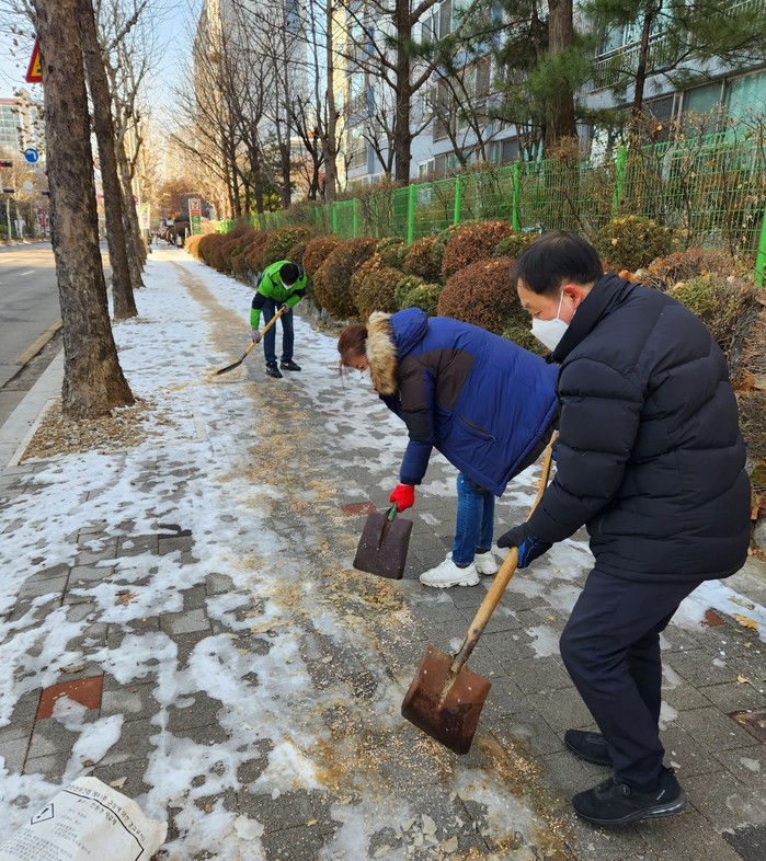 [부자동네타임즈 김인수기자] 고양특례시 일산서구 주엽1동(동장 이권재)은 한파로 인해 그늘져 얼어붙은 빙판길 위주로 어르신 등 보행자 안전사고 예방을 위해 잔설 제거에 힘쓰고 있다고 28일 밝혔다.