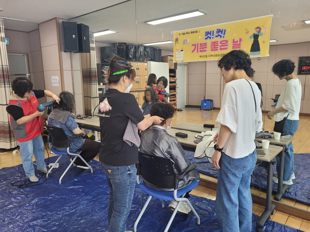 [부자동네타임즈 = 김인수 기자] 고양특례시 백석2동지역사회보장협의체가 지난 22일 백석2동 행정복지센터 4층 다목적실에서 ‘컷! 컷! 기분 좋은 날’이·미용 사업을 진행했다.