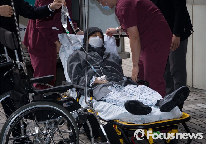 (서울=포커스뉴스) 1600억대 횡령, 배임 혐의로 2심까지 실형을 선고 받았다가 대법원에서 파기환송된 이재현 CJ그룹 회장의 첫 파기환송심 재판이 10일 오후 서울 고등법원에서 열렸다. 이재현 회장이 재판을 받기 위해 법원 앞에서 휠체어를 타고 있다.