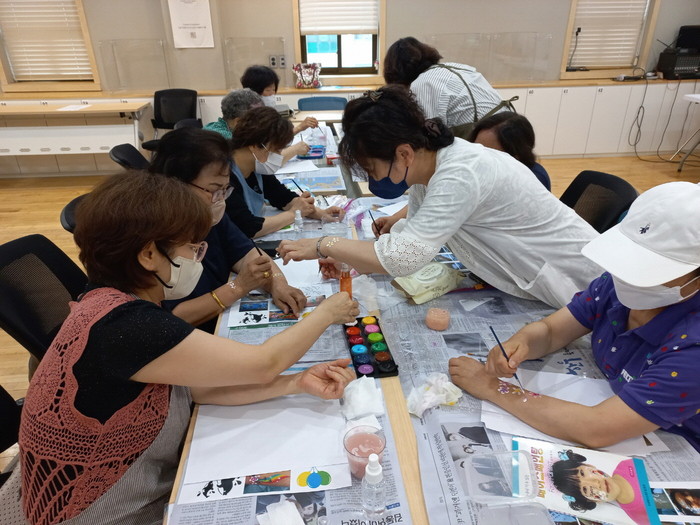 일산3동 주민자치회 위원들과 주민들은 일산3동 행정복지센터 3층에 위치한 후곡마루에서 다채로운 색의 물감들로 자신이 좋아하는 동물, 꽃 등 다양한 그림을 그리며 즐거운 시간을 보냈다.