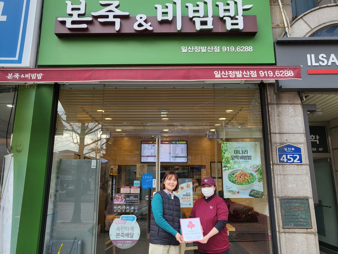 [부자동네타임즈 = 김인수 기자] 고양특례시 일산동구 정발산동은 지난 3월 6일, 정기기부에 동참하고 있는 본죽&비빔밥 일산정발산점에 사랑의열매 사회복지공동모금회에서 인증한 ‘착한가게’ 현판을 전달했다.