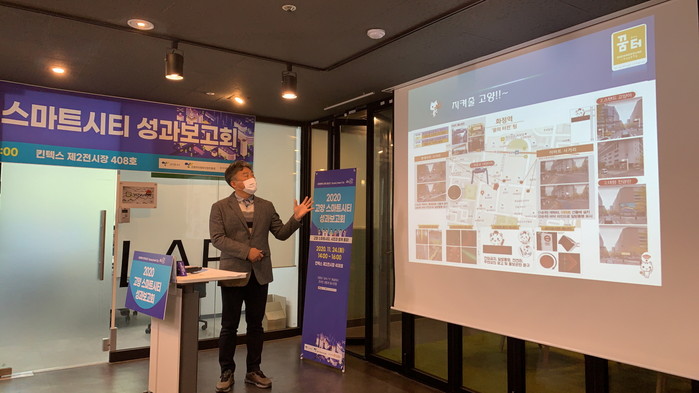 행사 1부에는 진흥원 조준혁 팀장이 고양시 스마트시티 사업 추진 경과를 발표하였고, 동국대학교 김민수 교수가 2020 고양 스마트시티 리빙랩 신규 발굴 프로젝트를 소개하였다.