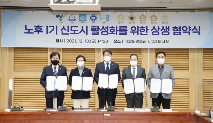 이재준 고양시장, 은수미 성남시장, 장덕천 부천시장, 최대호 안양시장, 한대희 군포시장과 5개 시의회의장들은 12월 10일 오후 국회에서, 노후 1기 신도시 활성화를 위한 상생 협약식과 합동기자회견을 잇따라 갖고 신도시 활성화 특별법 제정과 정부의 대책 마련 등을 촉구했다.