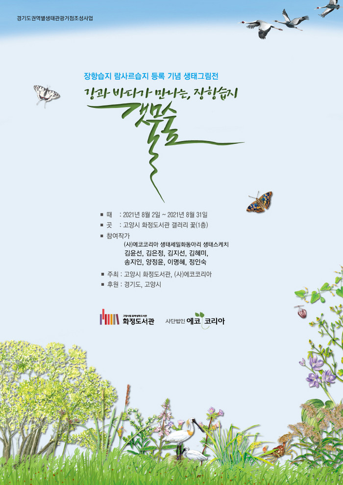 [부자동네타임즈 김인수기자] 고양시 꽃 특성화 화정도서관에서는 이번달 2일부터 31일까지 고양 장항습지 람사르습지 등록 기념 생태그림전 ‘강과 바다가 만나는, 장항습지 갯물숲’을 개최한다.