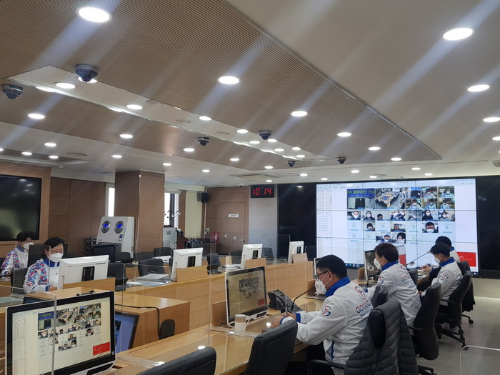 [사진설명] 1월 21일 고양시청 재난상황실에서 열린 2022 고양 세계태권도품새선수권대회 성공개최를 위한 화상 간담회.