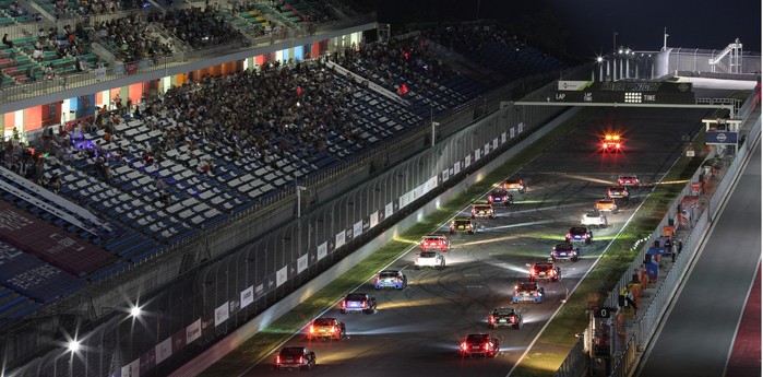 [사진설명] 지난 2019년 인제스피디움에서 열렀던 나이트 레이스 당시, 슈퍼 6000 클래스 결승전에 출전한 차량들이 레이스의 시작을 기다리고 있다.