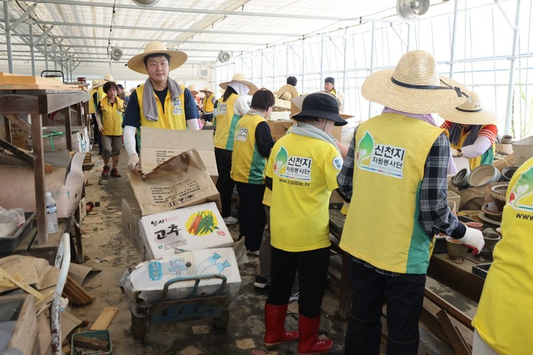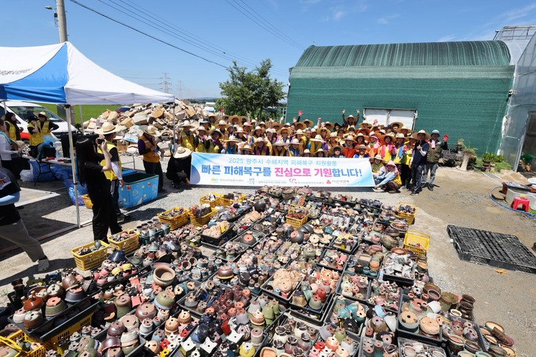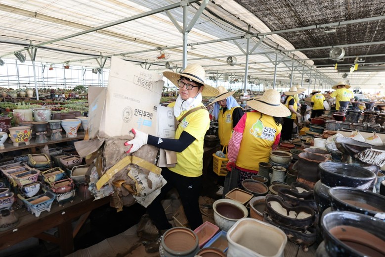 봉사자들은 진흙 속에 뒤엉킨 다육식물 화분을 조심스럽게 정리하고, 오염된 화분을 깨끗이 씻는 작업을 맡았다. 더불어 무너진 시설의 잔해를 함께 수거하며 복구 작업에 힘을 보탰다.
