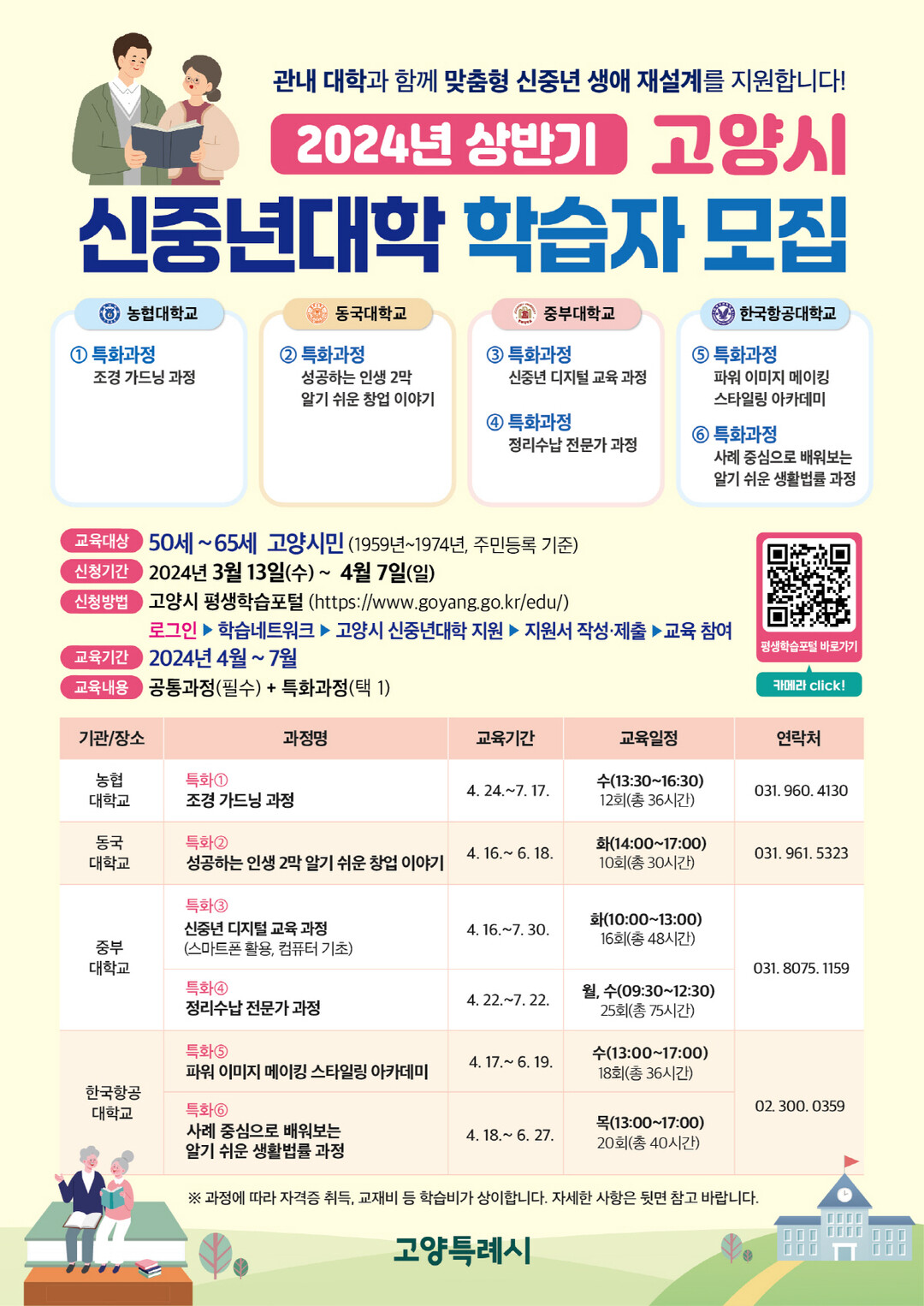 자세한 사항은 고양시 평생교육과 평생교육정책팀(031-8075-2295) 또는 과정이 진행되는 각 대학으로 문의하면 된다.(농협대학교 031-960-4130, 동국대학교 031-961-5323, 중부대학교 031-8075-1159, 한국항공대학교 02-300-0359)