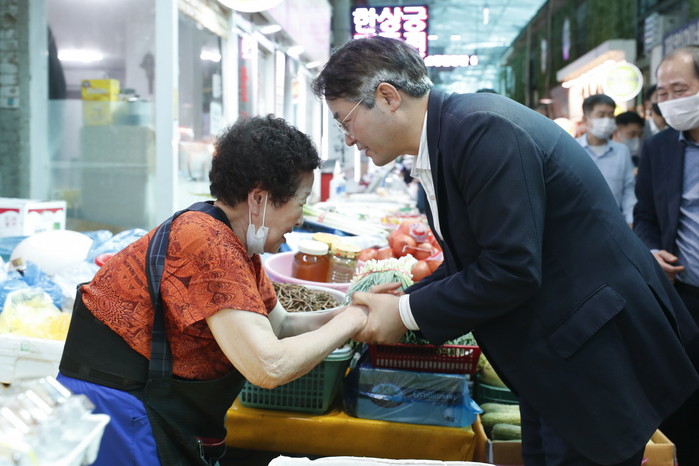 더불어 시민에게 “침체된 지역경제 활기를 불어넣기 위해 전통시장과 골목상권을 많이 찾아 달라.”고 말했다.