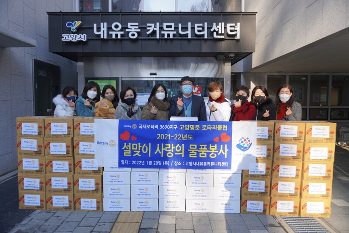 [부자동네타임즈 김인수기자] 고양시는 지난 20일 설 명절을 맞이하여 고양명문 로타리클럽에서 관산(내유)지역 취약 계층 어르신을 위해 설 명절 선물(한과세트)을 후원해 전달식을 진행했다고 밝혔다.