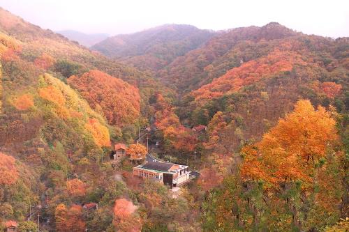 첩첩 골짜기에 단풍 병풍을 친 숲 한가운데 펜션 형태로 갖춰진 숲속의 집은 휴양객들에게 편안한 쉼터를 제공하고 있다.