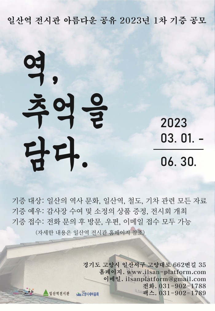 시는 공모전을 통해 ▲1900년대 초반부터 현재까지의 구 일산역에 대한 추억이 담긴 자료를 비롯하여 ▲기차표 ▲역무원 용품 ▲기차 및 철도 관련 기기, 부품 등 시대와 사회의 변천을 담고 있는 물건과 사진, 영상 등 모든 형태의 자료를 기증받는다.