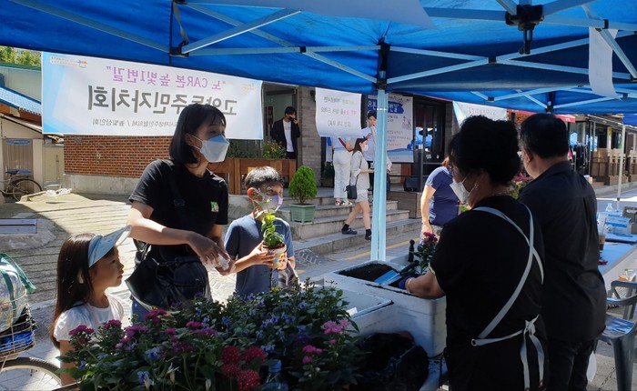 집에서 잠자고 있는 폐화분을 가지고 오면 고양동 화훼 단지에서 길러진 펜타스, 과꽃, 나비수국, 샤프란, 국화 등 식물과 상토를 제공해 직접 화분에 심어갈 수 있는 체험 행사를 진행했다.