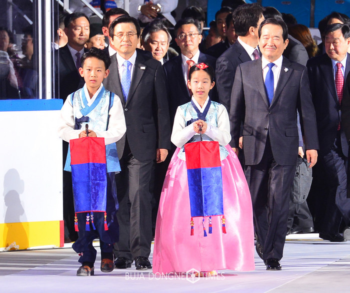 9일 오후 평창올림픽 G-1년 행사가 열린 강원도 강릉하키센터로 황교안 대통령 권한대행 국무총리와 정세균 국회의장이 입장하고 있다. 2017.02.09.