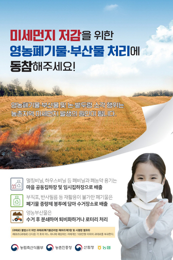 구는 각 동 행정복지센터 게시판에 안내문을 게시하는 등 홍보활동을 통해 주민들에게 영농폐기물의 올바른 배출방법과 집중 수거 기간을 안내할 예정이다.