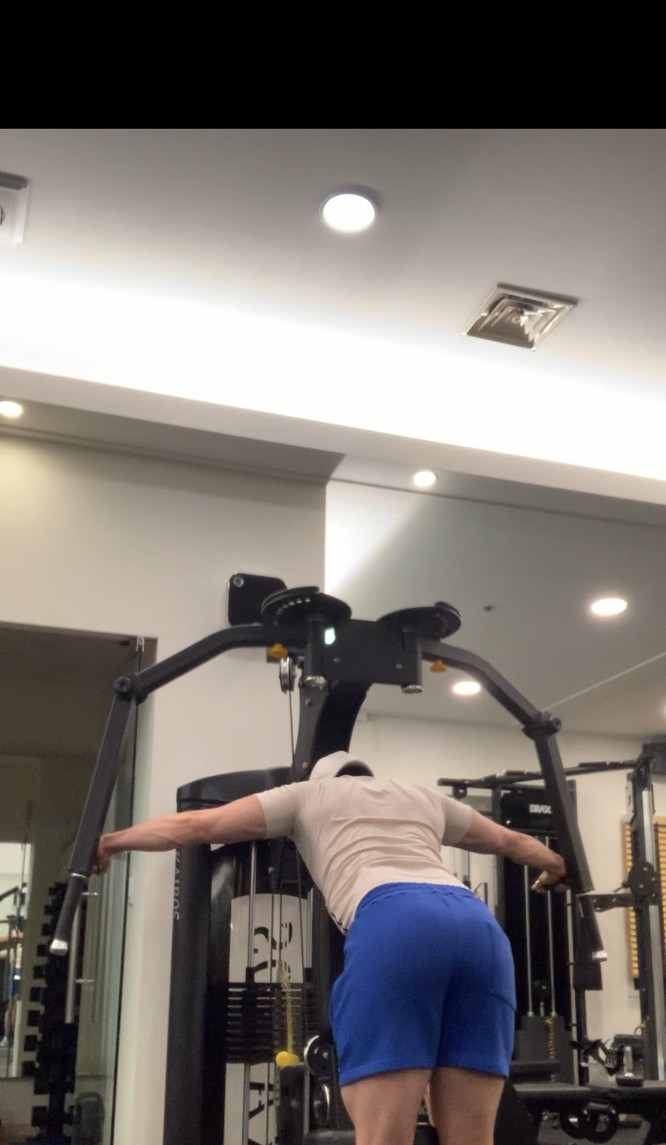 인크라인 벤트오버 레터널레이즈 + 인크라인 벤트오버 레터널레이즈 뉴트럴 그립 + 리버스 팩덱 플라이. 세가지 동작을 연속해서 쉬지 않고 진행 해보자.