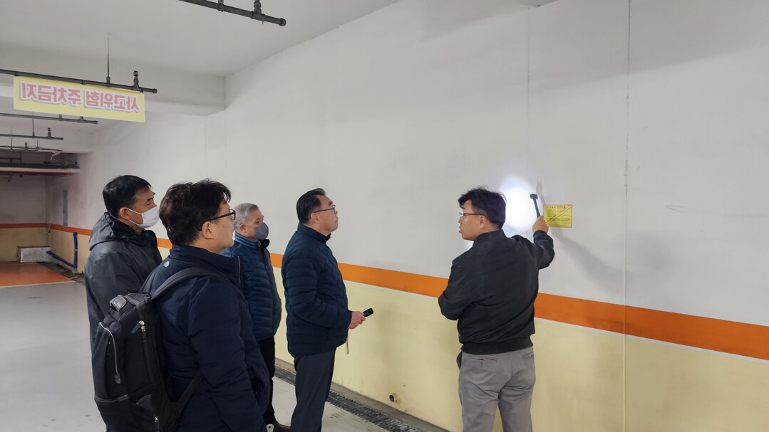 시는 관리주체와 면담하고 설계도서와 시공 구조물의 치수 동일 여부 확인, 고무망치로 구조체를 두드리는 타진(打診) 시험 및 균열, 처짐, 휨 등에 대한 육안 점검을 실시했다.