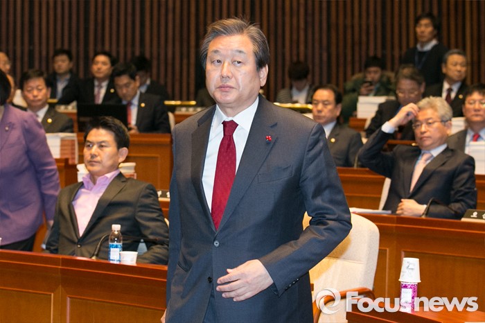 △ 김무성 새누리당 대표가 14일 오전 서울 여의도 국회에서 열린 의원총회에 참석해 단상으로 향하고 있다. <사진제공=포커스뉴스>
