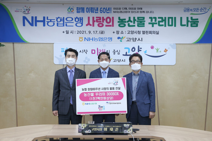 [부자동네타임즈 김인수기자] 고양시은 "17일 농협 창립 60주년을 맞이하여 NH농협 고양시지부가 취약계층을 위해 농산물 꾸러미 300박스를 기탁해 전달식을 개최했다."고 밝혔다.