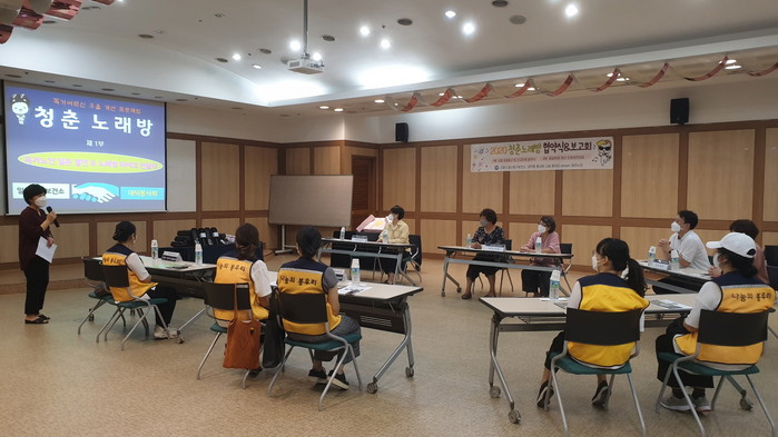 대회에 참가한 인원은 작년 청춘노래방 사업에 참여한 독거노인 48명 중 14명으로, 어르신들이 스스로 자신 있는 노래를 골라 지원받은 노래방 마이크로 각자의 집에서 노래를 부른 후 영상을 찍어 보건소로 제출하는 방식으로 진행됐다.