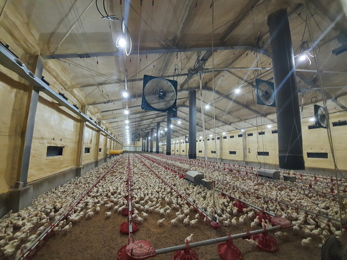 [사진 설명] 양계 축사 내부에서 환기 설비가 가동 중이다.