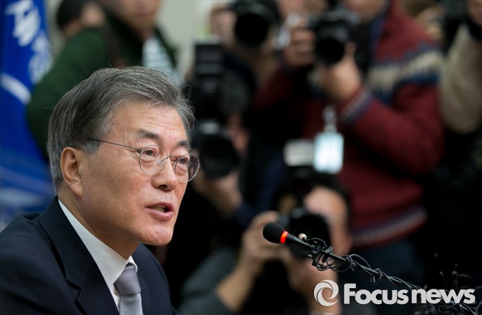 △ 문재인 새정치민주연합 대표가 3일 오후 서울 여의도 국회에서 안철수 의원이 제안한 '혁신전대' 등 현안관련 입장발표를 마친 뒤 취재진 질문에 답하고 있다. <사진제공=포커스뉴스>