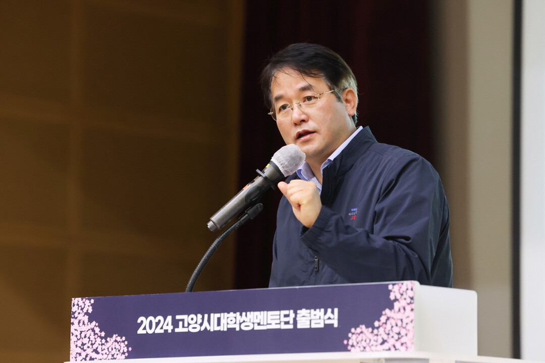 이동환 고양특례시장은‘고양유니브’출범식에서“고양시에 능력 있고 지역사회의 발전에도 관심을 가지는 청년들이 많다는 것이 자랑스럽다”고 말하며“여러분도 후배 학생들을 도우면서 다양한 경험을 통해 자신의 미래를 설계하고 성장하는 기회가 되기를 바란다.”고 격려했다.