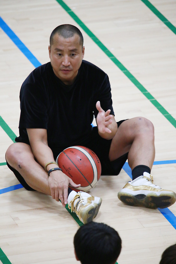 [사진설명] 이항범 대표가 유소년 선수들에게 농구 노화우를 전하고 있다.