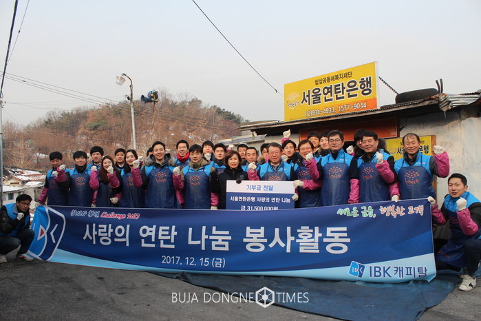 [부자동네타임즈 이현재 기자]IBK캐피탈(대표이사 이상진)은 임직원 30여명이 참석한 가운데 서울 노원구 중계본동 백사마을에서 연탄 나눔 봉사활동을 펼쳤다고 15일 밝혔다.