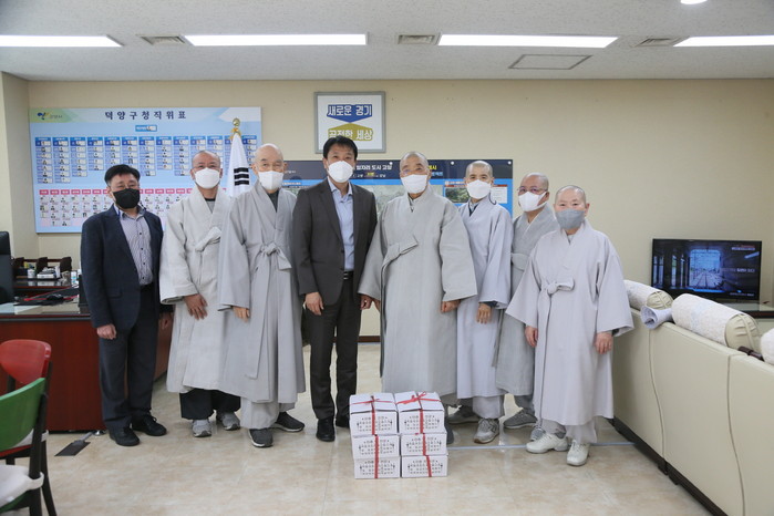 [부자동네타임즈 김인수기자] 대덕스님 고양특례시 불교사암연합회 회장은 지난 17일 코로나19와 시민의 안전을 위해 애쓰는 공무원들을 격려차 덕양구청을 방문했다.