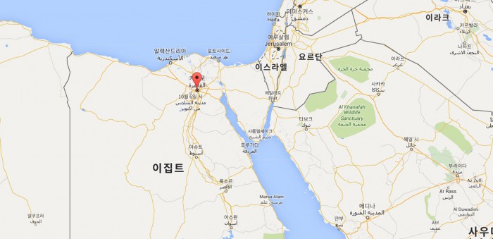 △ 이집트의 수도 카이로(빨간점) 중심가에 위치한 식당에서 화염병이 폭발해 최소 12명이 숨지는 사고가 발생했다. <사진출처=구글맵>