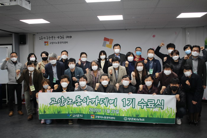 고양시와 성공회대학교의 상호 교류 활성화를 위한 공동협약(8월21일) 첫 사업으로 진행된 이번 고양노동아카데미에는 코로나19의 영향으로 참가자 수가 제한되었음에도 서울교통공사, 수자원조사기술원, 고양시공무원노조, 일산병원노조, 건설노동자 등 지역 노동자뿐만 아니라 마을활동가, 정치인 등 다양한 분야에서 활동하는 50명이 참가하였으며 수료 조건(80% 이상 출석, 레포트 제출)을 충족한 32명이 수료증을 받았다.