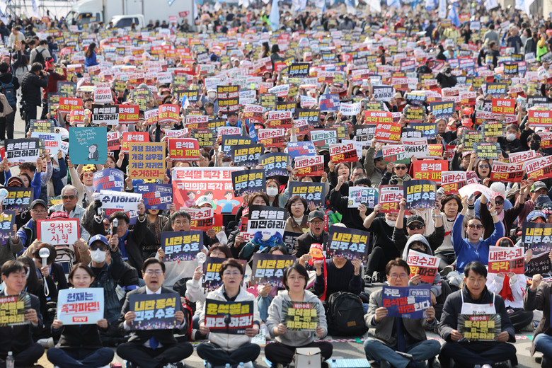 헌법재판소의 윤석열 탄핵심판 선고를 앞둔 15일 서울 도심 곳곳에서 탄핵 찬반 진영의 대규모 집회가 열렸다.선고일을 지정하지 않았지만 임박했다는 전망도 나오는 가운데 양 진영은 이번이 선고 전 마지막 주말 집회일 수도 있다고 보고 총력전을 펼쳤다.
